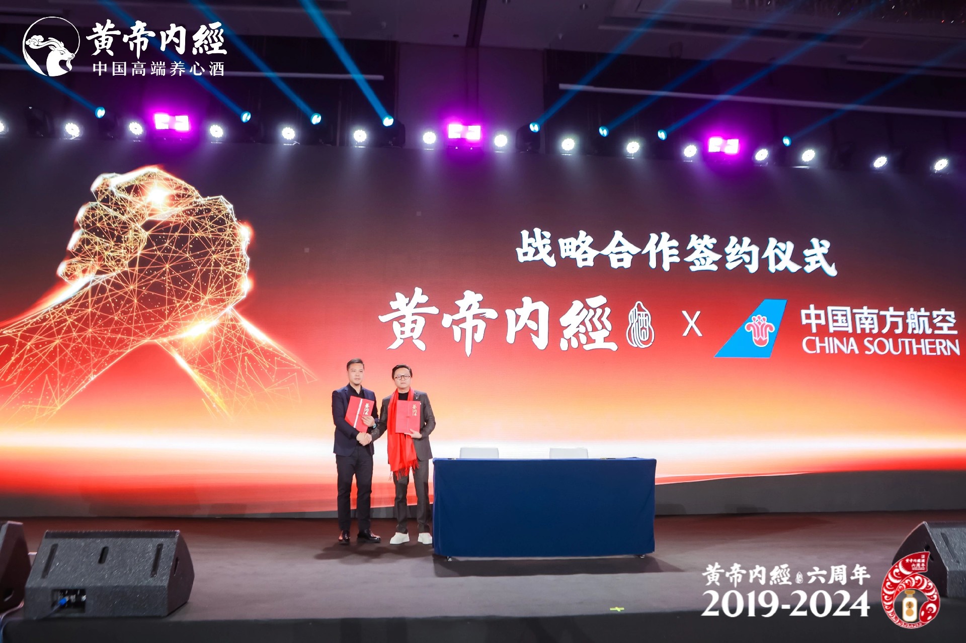 活動現(xiàn)場,南航集團文化傳媒副總經(jīng)理蘇韓和黃帝內(nèi)經(jīng)酒品牌總監(jiān)鄧緯雨代表雙方正式簽約,黃帝內(nèi)經(jīng)酒與中國南方航空達成戰(zhàn)略合作。