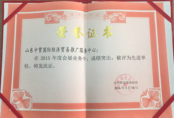 2015年度山東會展行業(yè)先進(jìn)單位。 記者 李曉夢/攝