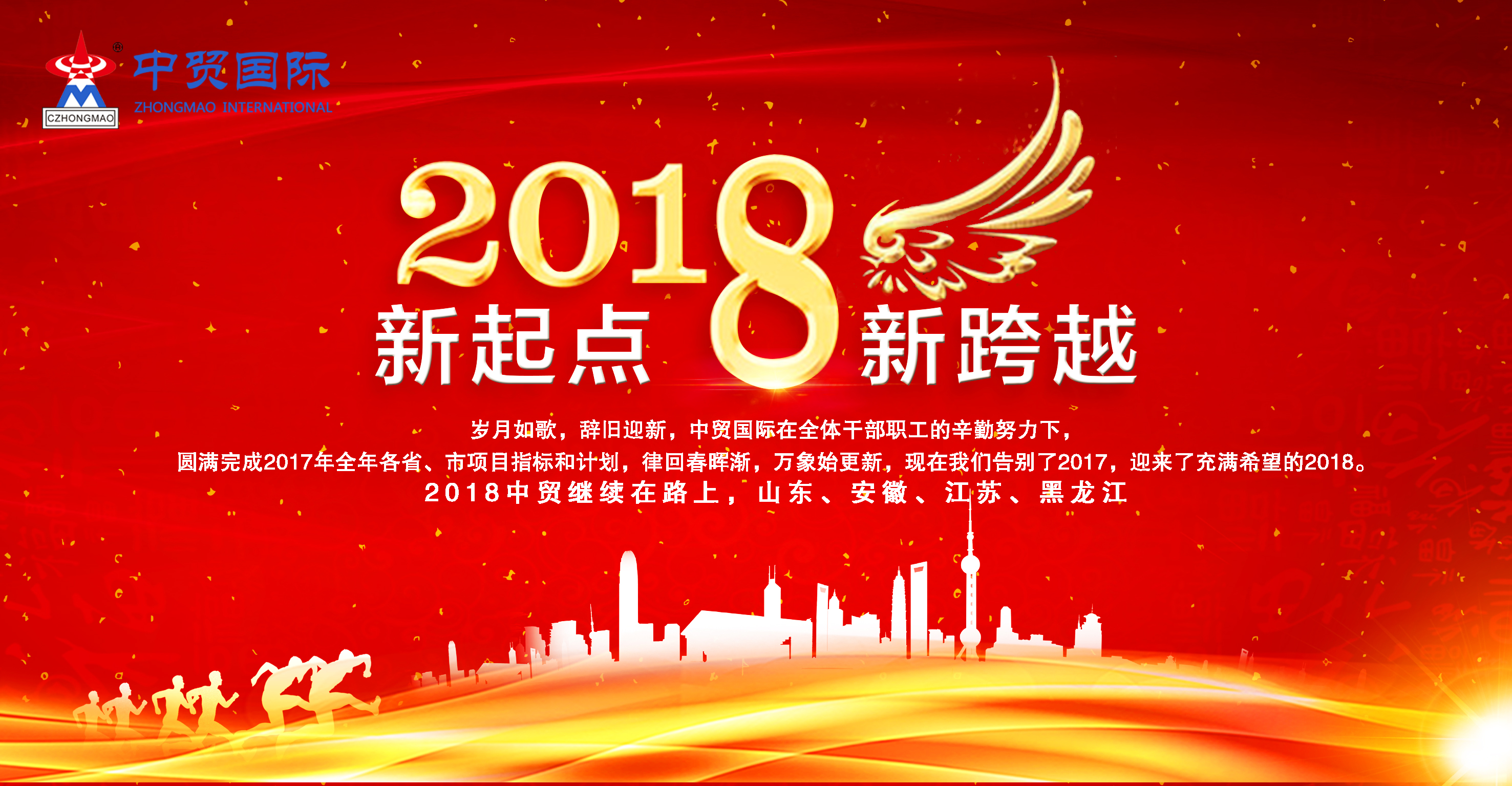 凝聚力量再創(chuàng)輝煌2018中貿集團繼續(xù)在路上 歲月如歌,辭舊迎新,中貿國際在全體干部職工的辛勤努力下,圓滿完成2017年全年 各省、市項目指標和計劃,律回春暉漸,···